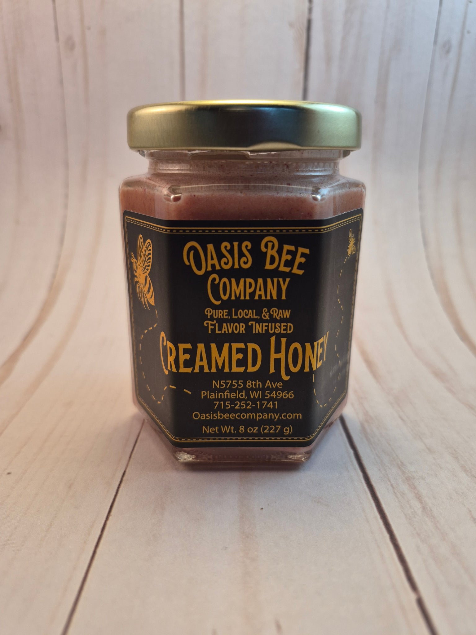 As many of you know, REAL honey will always turn solid. This reversible natural process known as crystallization makes gritty honey that can be unappealing to some. If you like the firmer consistency with a smooth texture & mild taste, this is the answer! Creamed honey is made with a tedious process involving time & temperature. Because of the nature of variant honey taste, color, firmness, & texture can vary slightly from batch to batch. Its uses are so versatile & much cleaner for the kids! It will stay "solid" FOREVER as long as not exposed to greater than room temperature environments. Sounds great right? Now close your eyes & imagine that unique goodness FLAVORED! Easily spreadable on toast, bagels, English Muffins but dissolves the same as liquid honey in warm drinks or food like oatmeal. AMAZING on apples or other fruits or with peanut butter. Top your salmon or grilled chicken with Lemon or HOT Pepper honey. HOT Pepper honey also pairs perfectly in hot cocoa, cornbread, or ANYTHING you want to add some HEAT & SWEET! Great for grilling & cooking due to the slower melt point & consistency....the options are endless or just eat it with a spoon! All flavors are 100% natural freeze dried fruits & peppers sourced from a Wisconsin based company! NEVER any added sugar. Refrigeration not necessary but can ensure no separation due to heat or sun exposure.